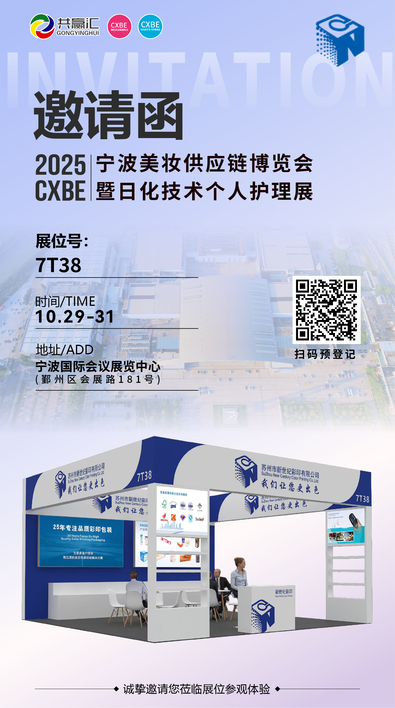 Suzhou New Century Color Printing Co., Ltd.는 모든 참석자들의 방문을 정중히 초대합니다. 부스 7T38 제품 범위를 살펴보고 잠재적인 협업에 대해 논의합니다.